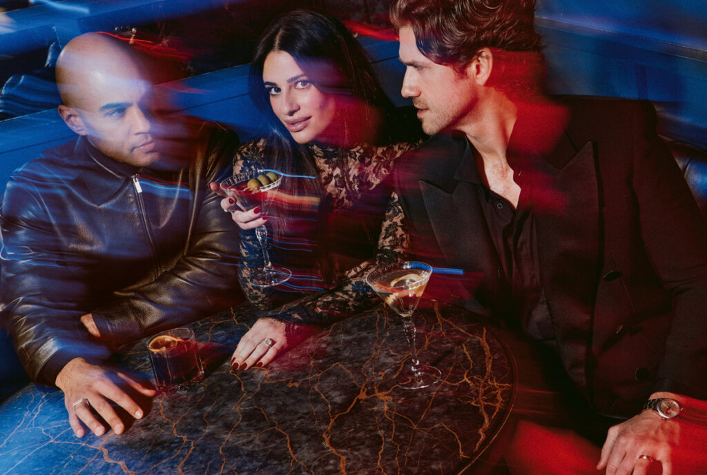 厳しい冬の真っ只中、冷戦時代を舞台にしたミュージカル『チェス』が、トニー賞受賞者のアーロン・トヴェイト、リー・ミシェル、ニコラス・クリストファーによる東西の三角関係を描き、ブロードウェイを熱狂の渦に巻き込んでいる。このスター3人は、ロックフェラー・センターの洗練された「ペブル・バー」で、Broadway.comの編集長ポール・ウォントレックと対談し、待望のリバイバル公演や、それぞれがこの作品とどう向き合っているかについて語った。その後、彼らはバーの片隅で寄り添い、舞台上で演じる洗練されたネオンに彩られた世界を彷彿とさせる、親密な写真撮影を行った。